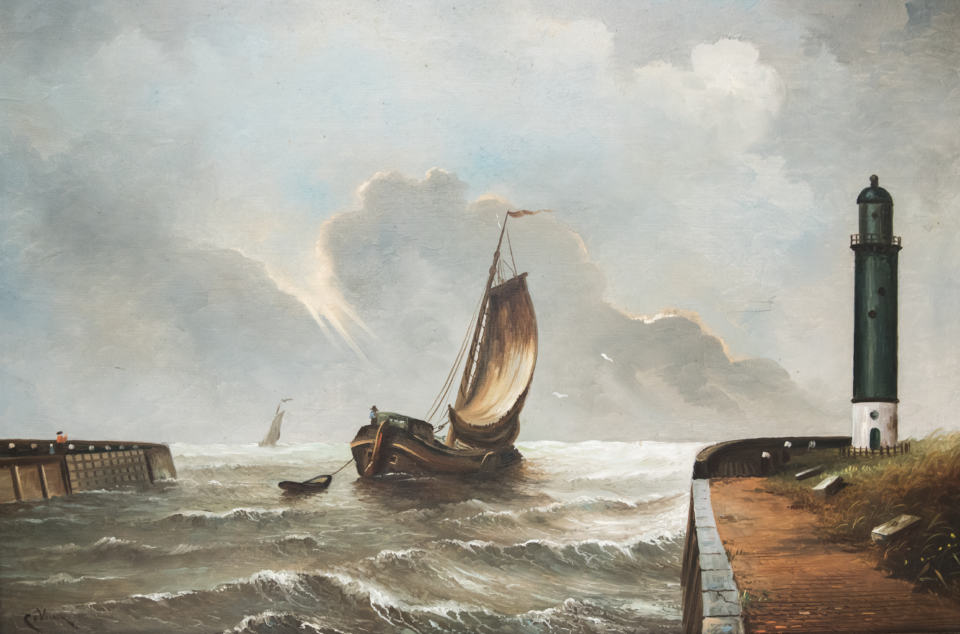 Het schilderij, dat oorspronkelijk de muren sierde bij Simons oma, werd een erfstuk dat deel uitmaakte van de nalatenschap. Simon reflecteert op zijn parel: “Ik vond het een leuk schilderij omdat ik toen al in Hellevoetsluis woonde’’. Zijn oom, Cornelis Jan van Bommel, ontving het als een eervol afscheidscadeau van de gemeente Hellevoetsluis. Het beeld van de havenentree uit die tijd is geschilderd met een opmerkelijke groene vuurtoren. Er zijn weinig beeltenissen van de groene vuurtoren, die in de Tweede wereldoorlog groen geschilderd is om hem te camoufleren. Zijn vrouw vult aan: ‘’Als je eenmaal de mensen op het schilderij hebt gezien, blijf je ernaar kijken’’.