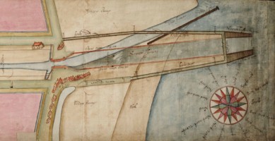 Kaart van de haven van Hellevoetsluis, gemaakt door Lenaert Cornelisz Koutter uit 1620