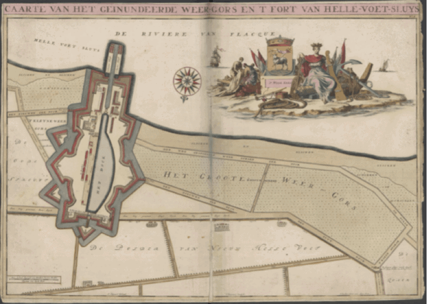 Caarte van het geïnundeerde weergors en ’t Fort van Hellevoetsluys