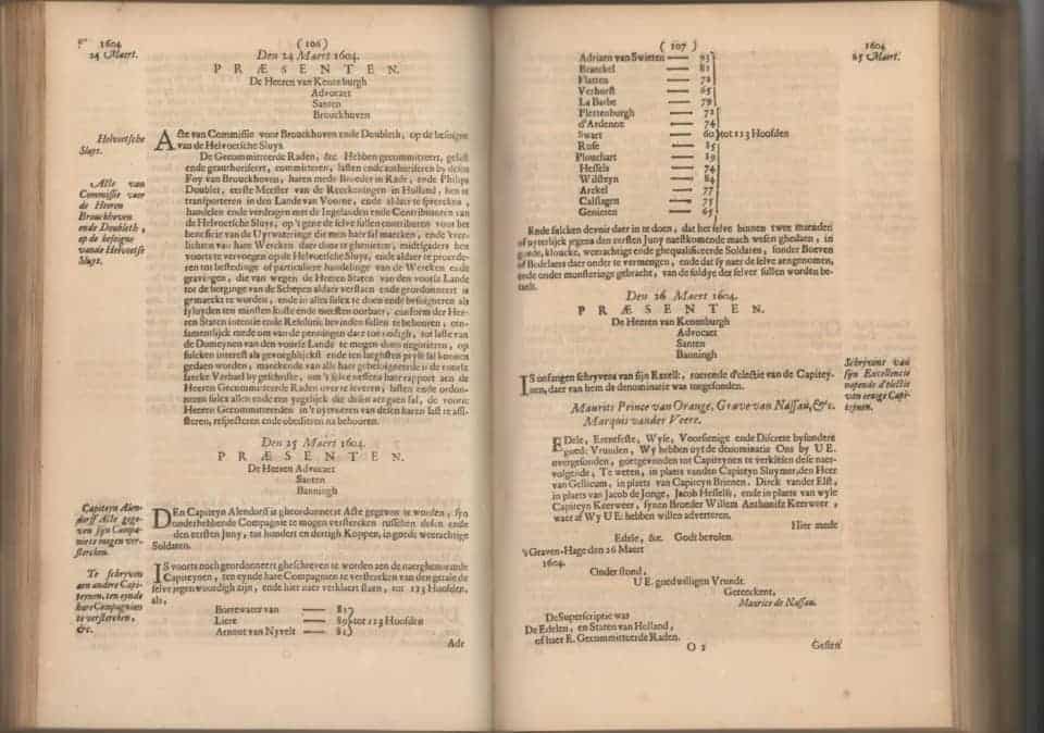 Notulenboek Staten van Holland over de ‘Geschiktste bergenisse voor oorlogsschepen’ uit 1604