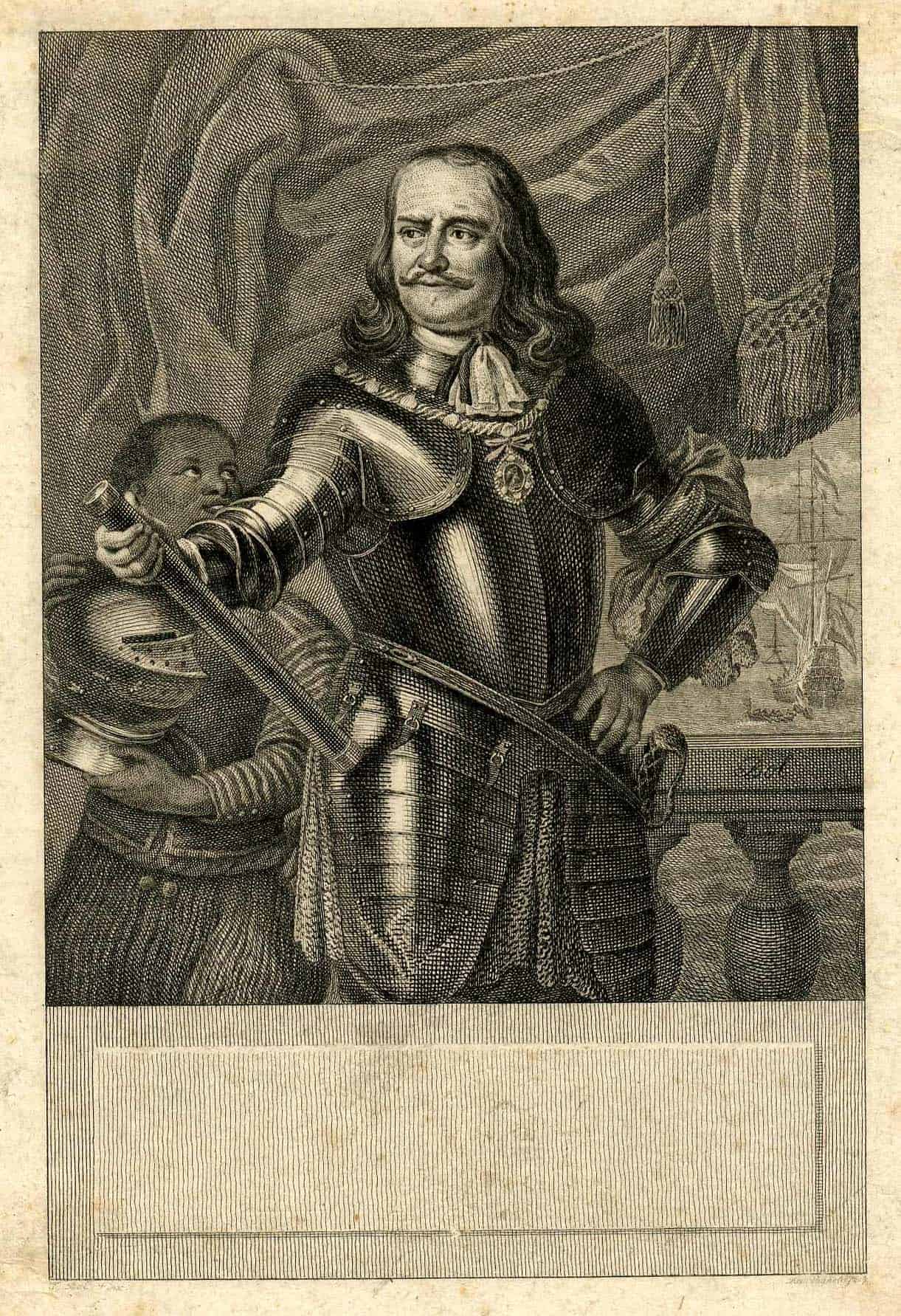 Dit is een portret van Maarten Harpertszoon Tromp. Zeevaarder en luitenant-admiraal van Holland en West-Friesland, geboren op 23 april 1598 in Den Briel. Ook hij heeft voet aan wal gezet in Hellevoetsluis. Onder meer in 1648, om een conflict te de-escaleren tussen Engelse royalisten en parlementariërs, die bij Hellevoetsluis van anker gingen.