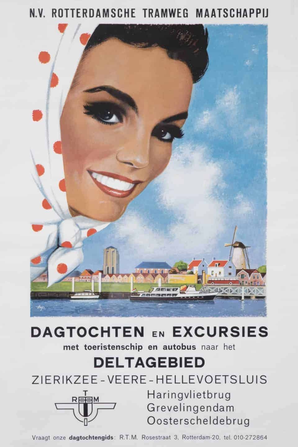 Na het afronden van de bouw van de Deltawerken wordt het project door zijn wereldwijde bekendheid al snel een toeristische trekpleister. De werken worden onder meer door de American Society of Civil Engineers tot één van de zeven moderne wereldwonderen verklaard. De poster laat zien dat toeristenschepen en bussen vertrekken vanuit de haven van Hellevoetsluis, speciaal om de Haringvlietdam te bekijken. Omdat er rond de Haringvlietsluizen ook veel toerisme wordt verwacht, wordt aan beide zijden van de dam een parkeerplaats voor 400 auto’s aangelegd.