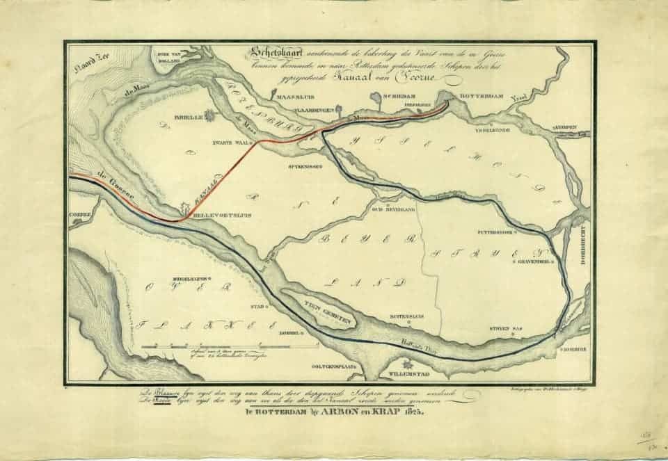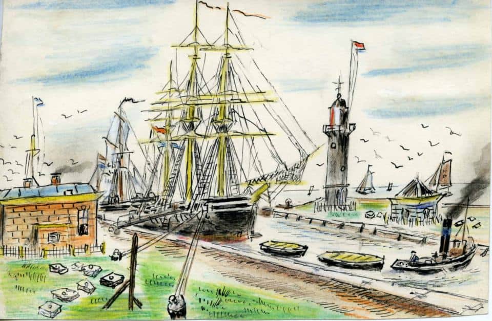 Maar er is hier niet alleen strijd. Ook veel koopvaarders passeren de rede van Hellevoetsluis, zeker nadat in 1830 het Kanaal door Voorne wordt geopend.