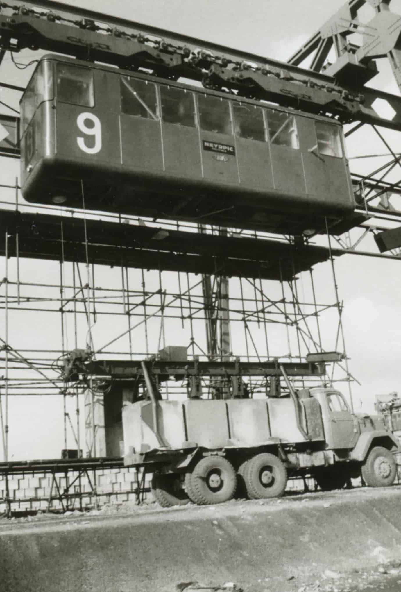 Vanuit een gondel die aan een kabelbaan hangt werden de gefabriceerde betonblokken in zee geworpen. In totaal worden 140.000 van dit soort blokken vervaardigd en in de watergangen tussen de oevers en sluizen gegooid. De blokkendam vormt een stevige ondergrond voor het dijklichaam, dat met opgespoten zand, grond en asfalt verder wordt opgehoogd. Met behulp van een gondel worden betonblokken vanaf een kabelbaan in het Haringvliet geworpen om de Haringvlietdam op te bouwen.
