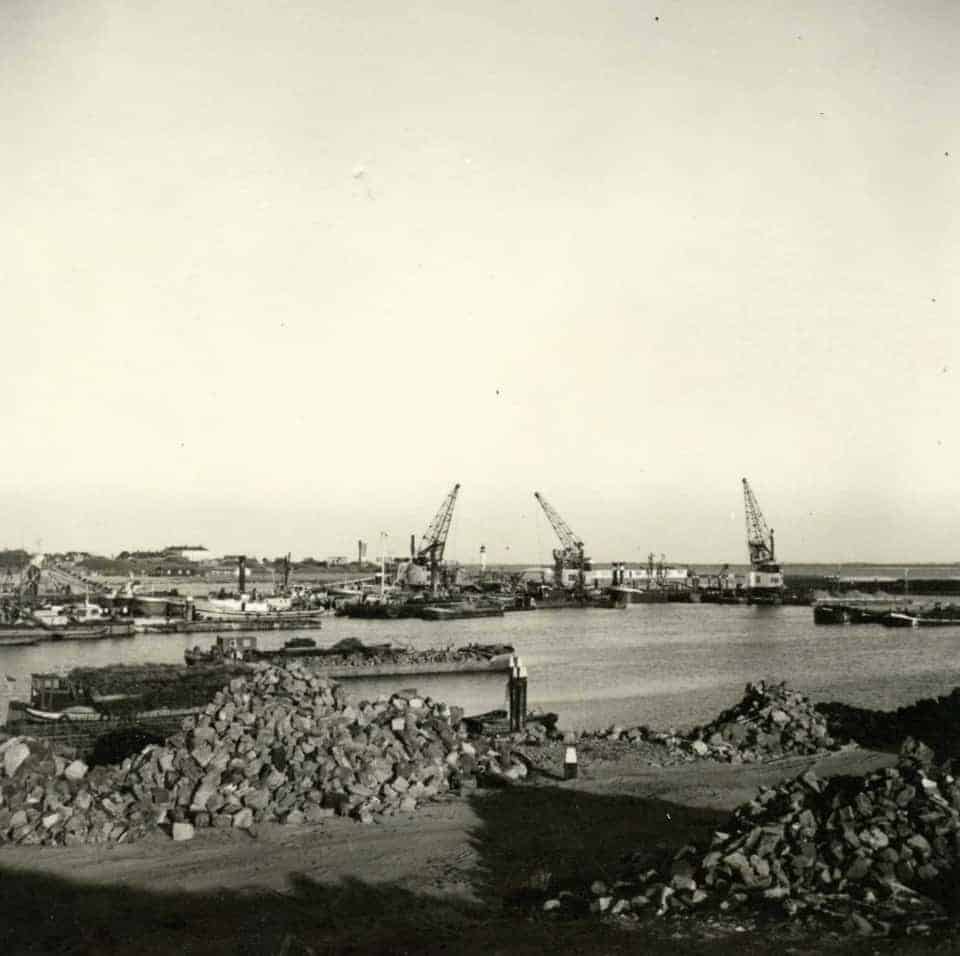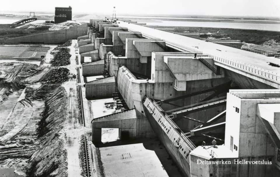 Na alle rampspoed komt Hellevoetsluis eindelijk weer in rustiger vaarwater terecht. Om Nederland beter tegen het water te beschermen, worden vanaf 1956 de Deltawerken aangelegd. Nadat het sluiscomplex op het werkeiland Neeltje Jans is voltooid, kan aan de daadwerkelijke afdamming worden begonnen. In de werkhaven van Hellevoetsluis en in de vissershaven in Stellendam worden twee betonfabriekjes gebouwd die betonblokken van 1m3 fabriceren.