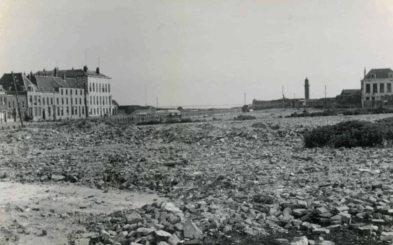 Langs de kust wordt door de bezetters de Atlantikwall aangelegd: talloze bunkers moeten een vijandelijke aanval voorkomen. Om het schootsveld te verruimen moet daarom een groot deel van de vesting worden afgebroken. Op de foto is te zien hoe een groot deel van de bebouwing er na deze ontruiming aan toe is. De vuurtoren en een paar gebouwen aan de kustlinie worden gespaard, maar verder blijft er vooral veel puin over.