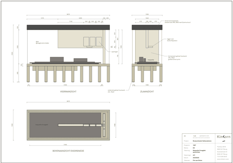 Na het vaststellen van het definitief ontwerp kan het ontwerpen in detail gaan beginnen. Stukje bij beetje worden allen onderdelen van de inrichting van de museumloods uitgetekend, uitgerekend en worden de materialen gekozen. Een zorgvuldig proces wat word begeleid door ontwerper Kinkorn en gerenommeerde interieurbouwer Kloosterboer.Tegelijkertijd gaat Kloosterboer de goedgekeurde onderdelen van de expositie in zijn werkplaats fabriceren. Het geheel van de expositie wordt dan in oktober en november in het Museum geplaatst en aangesloten op de elektriciteit.