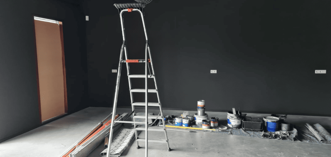 Het schilderwerk is van start gegaan. Een grote transformatie word in gang gezet. Alle wanden, plafonds en deuren krijgen een strakke donkere antraciet kleur. Door de kleur komt het ontwerp van Kinkorn langzaam tot leven. Vrijwilligers merken al op dat de kleur echt perfect is voor het uitlichten van objecten.